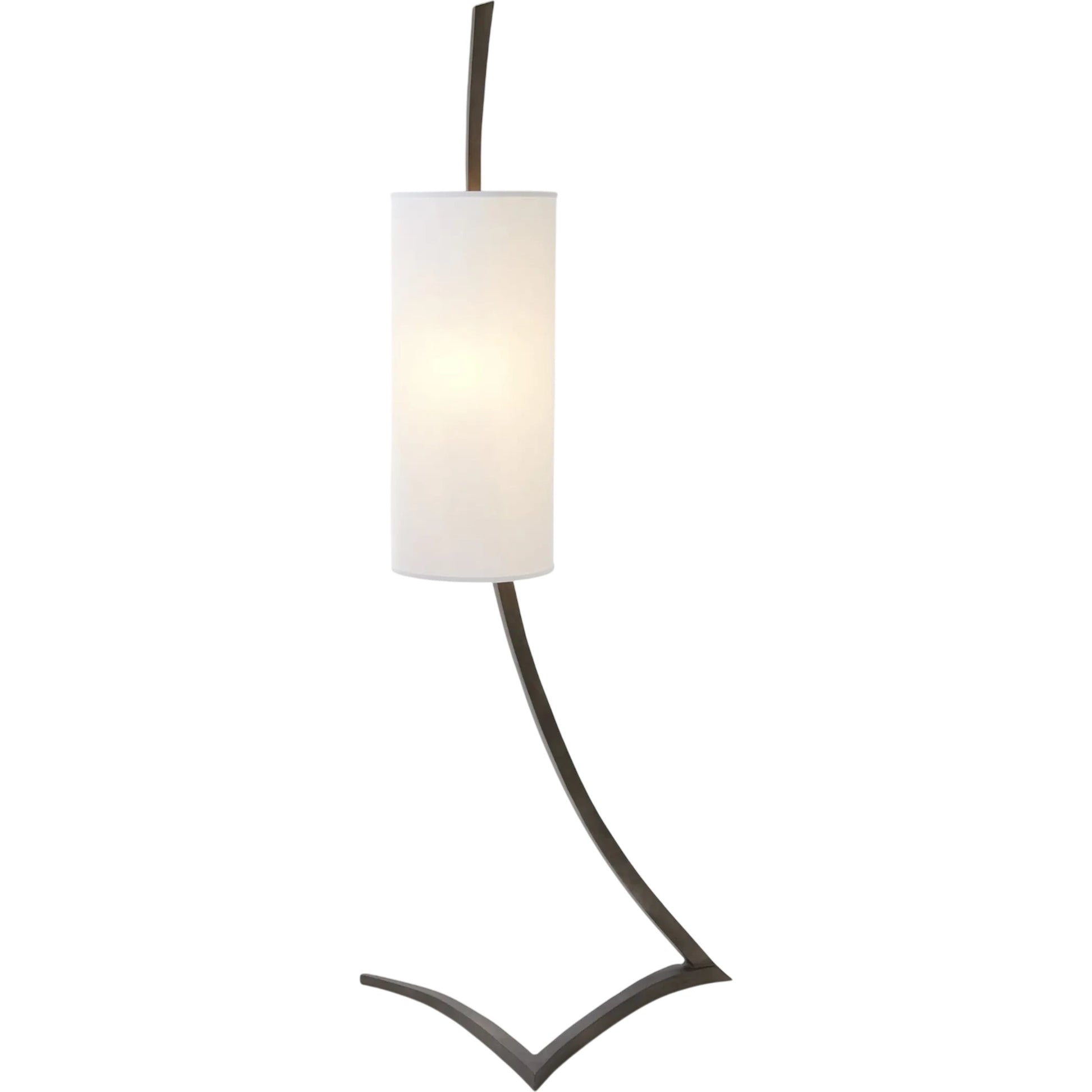 Inspired by Scandinavian design of the late-1940's, the sculptural Mojave floor lamp is perfectly balanced on a single stripe of metal which zig-zags under its tall, narrow shade. Not an easy feat to achieve on an 82" tall lamp! Antique graphite finish on iron.