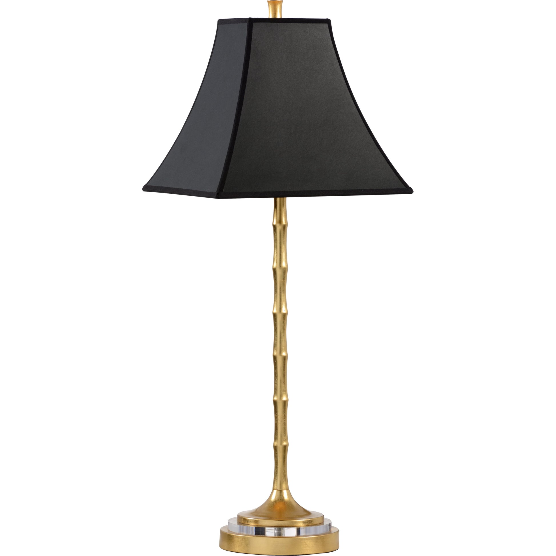 Update your dining room with Ojito Lamp. This 31" buffet lamp is our interpretation of a bamboo stalk. Boasting a radiant gold leaf finish over composite and a clear crystal, this lovely lamp is sure to shine in any decorative style. Completing the look is a square black paper shade.