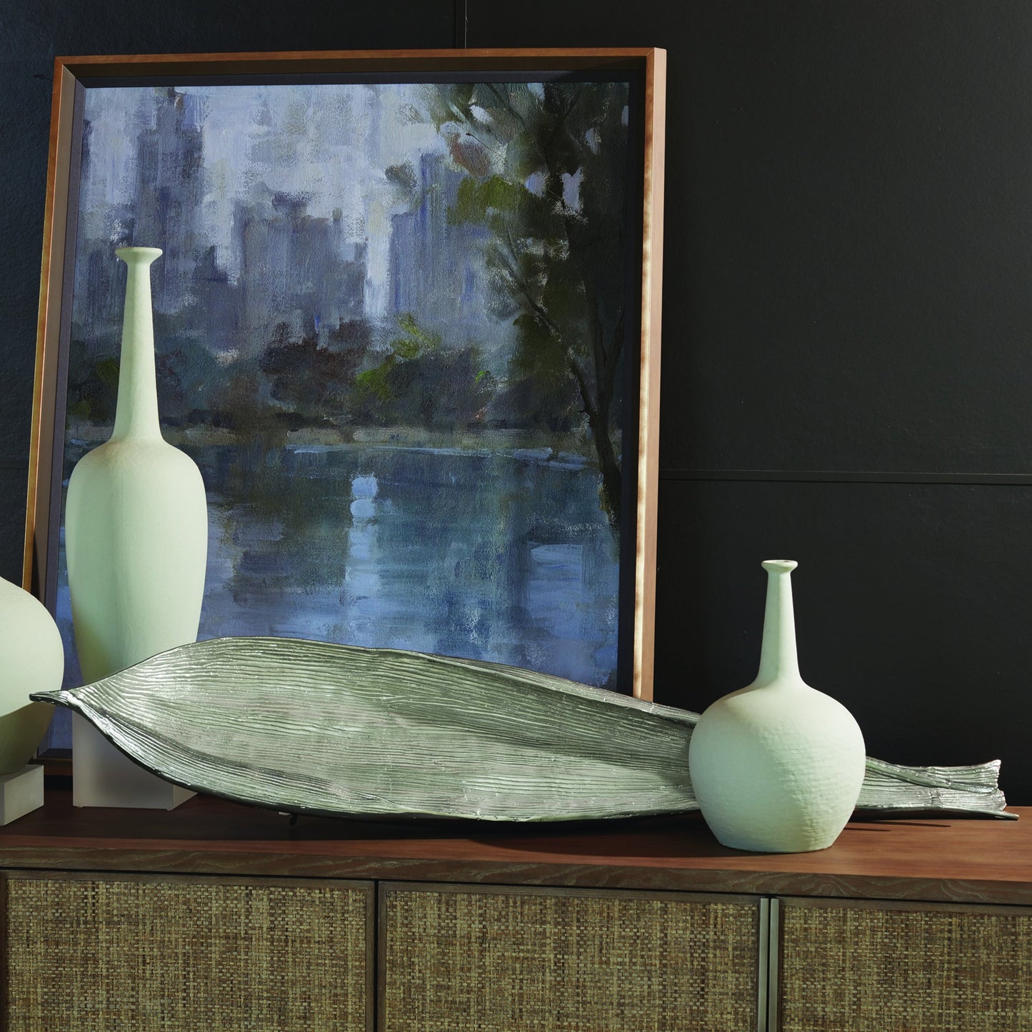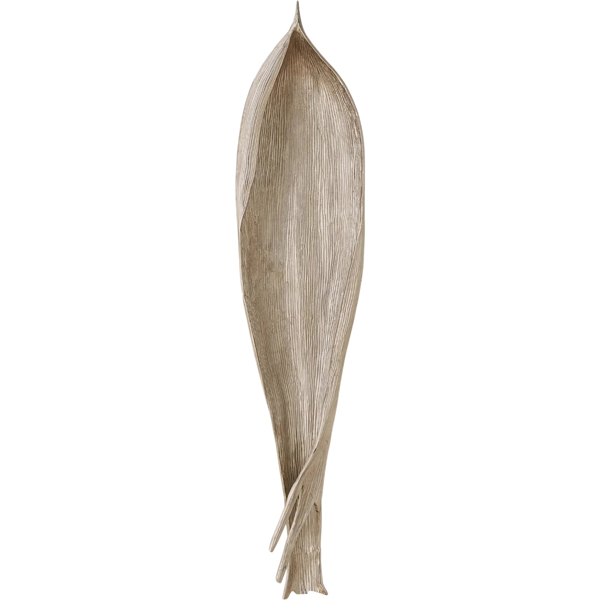 Cast from a palm seed pod originally found in Florida, this footed version can rest tabletop or hang as interesting wall décor. Pre-installed hanging mechanism on the underside allow for it to hang vertically or horizontally. Nickel finish over aluminum.