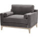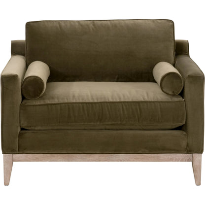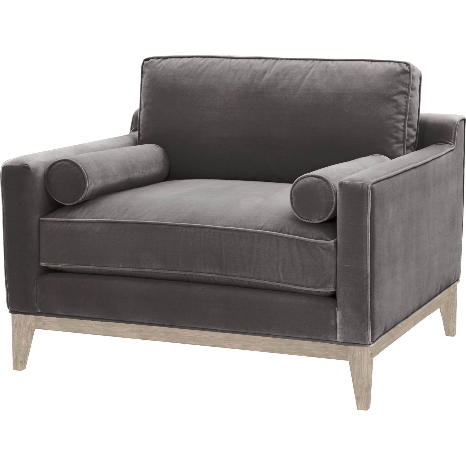 The rich and velvety texture of this sofa chair makes it very alluring and pleasing to the eye. Its wide stature creates a warm and inviting place to sit and get comfortable on. It features reversible seat and back cushions filled with a polyester and down blend that are extremely comfortable and appealing to curl up on. It also includes two round bolster pillows that accessorize and complete the look. The clean and simple lines with exposed wood base add traditional and modern design to this sofa chair. Complete your living room with this attractive sofa chair that will fit in well with many settings.