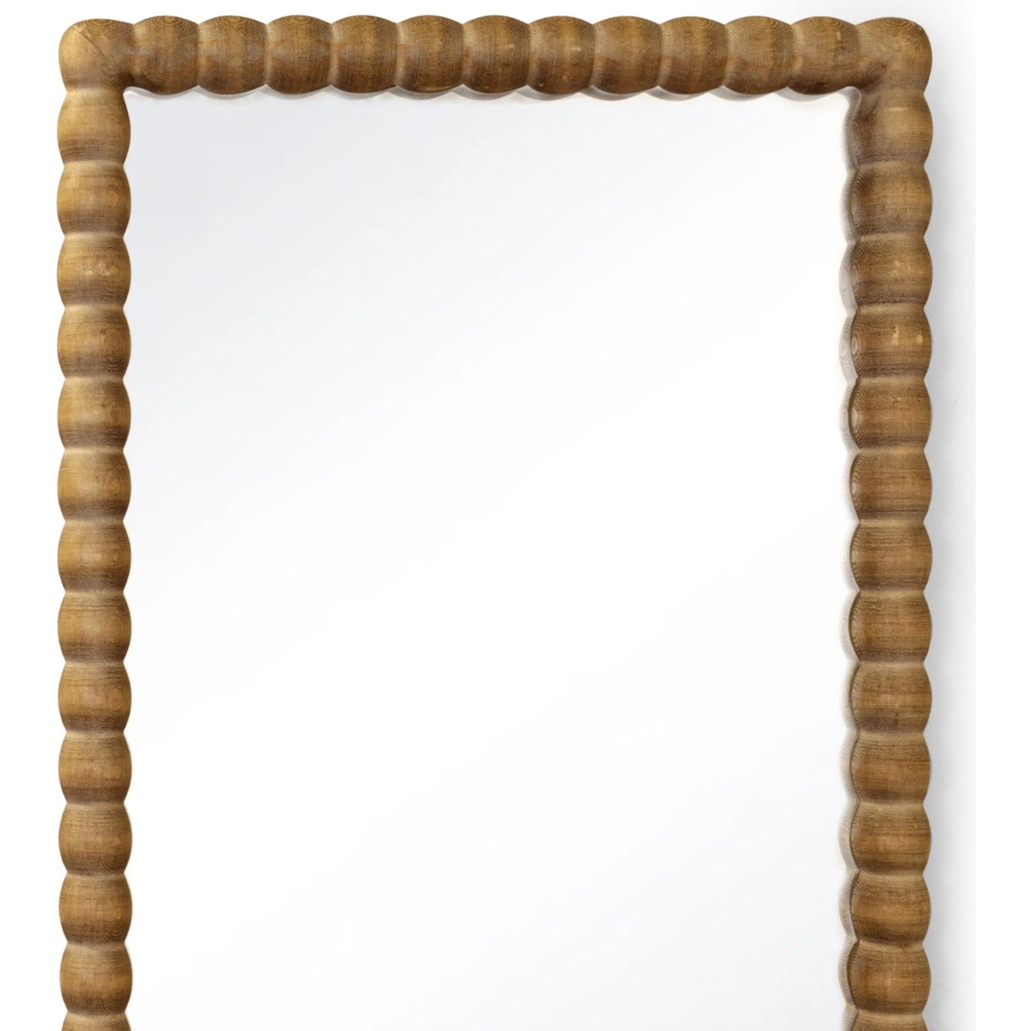 The Perennial Mirror makes an eye-catching statement, mixing an angular silhouette with organic trim. The frame is crafted from solid wood with a natural texture that brings out the wood grain for a mix of farmhouse and French-country. Add an air of rustic chic to a master bathroom or over a dresser.
