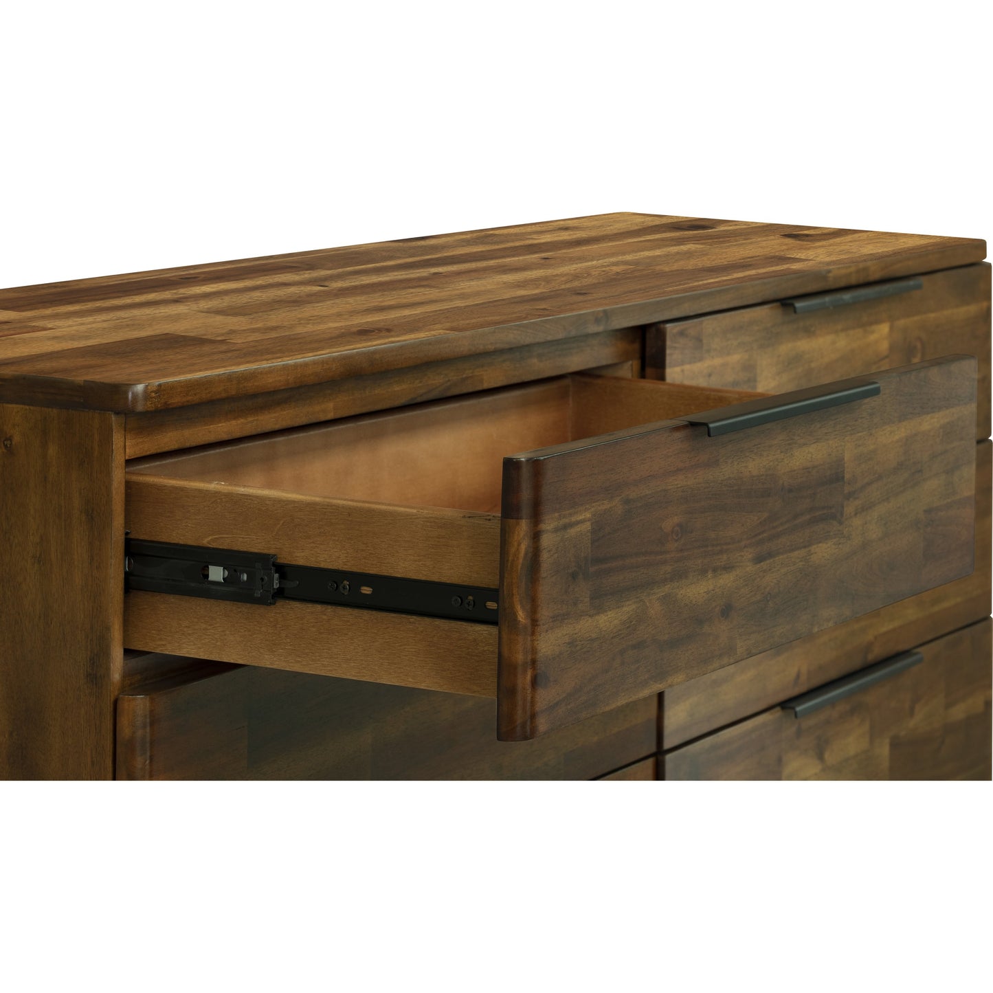 - Metal drawer handles are sturdy and stylish, adding to the dresser's overall aesthetic