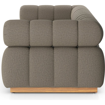 A modern take on mid-century Italian design, soft volume and exaggerated proportions fuse for a sculpted look and playful feel. Atop a plinth-style teak base, outdoor-friendly seating features dramatic tufting for a padded sit, with a matching ottoman to complete the look. Cover or store inside during inclement weather and when not in use.
