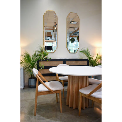 This dining table is a stunning piece of furniture designed to enhance the aesthetics and functionality of any dining space. Crafted from high-quality materials, it boasts a sturdy construction for long-lasting durability.