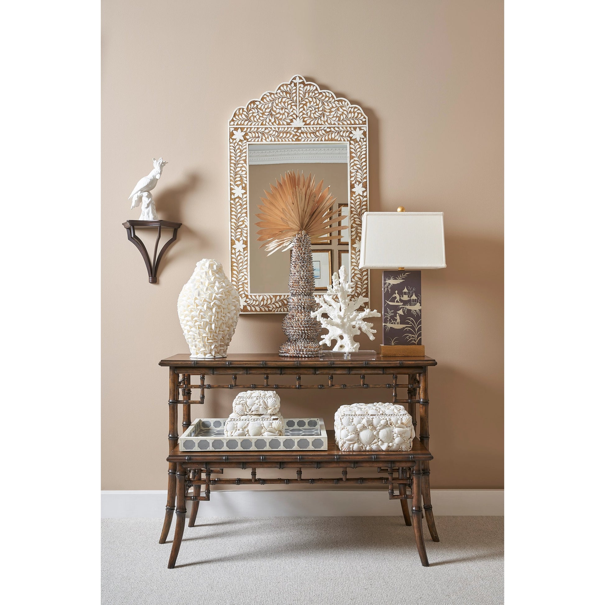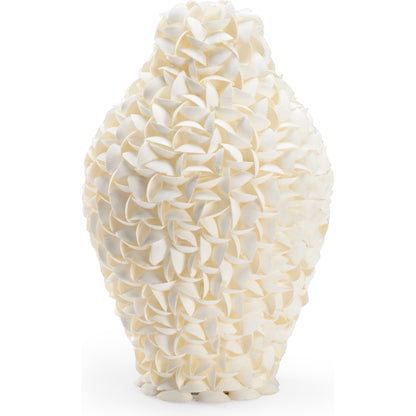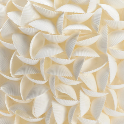 Urn constructed of individually applied arca shells. For decorative use only. No opening in top.
