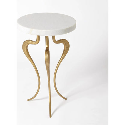 The design of the legs on our Silhouette Accent Table appear to be very delicate but yet they are extremely sturdy. Available in natural iron w/ flamed black granite, black iron w/ oxidized copper or antique gold w/ white honed marble. Sexy sidekick to any comfortable chair.