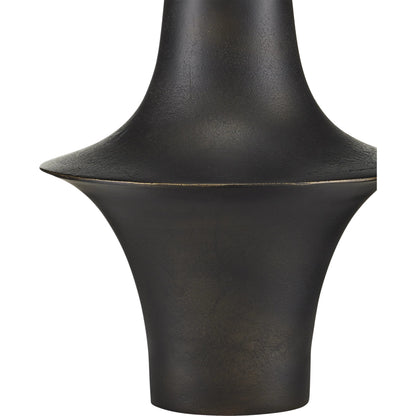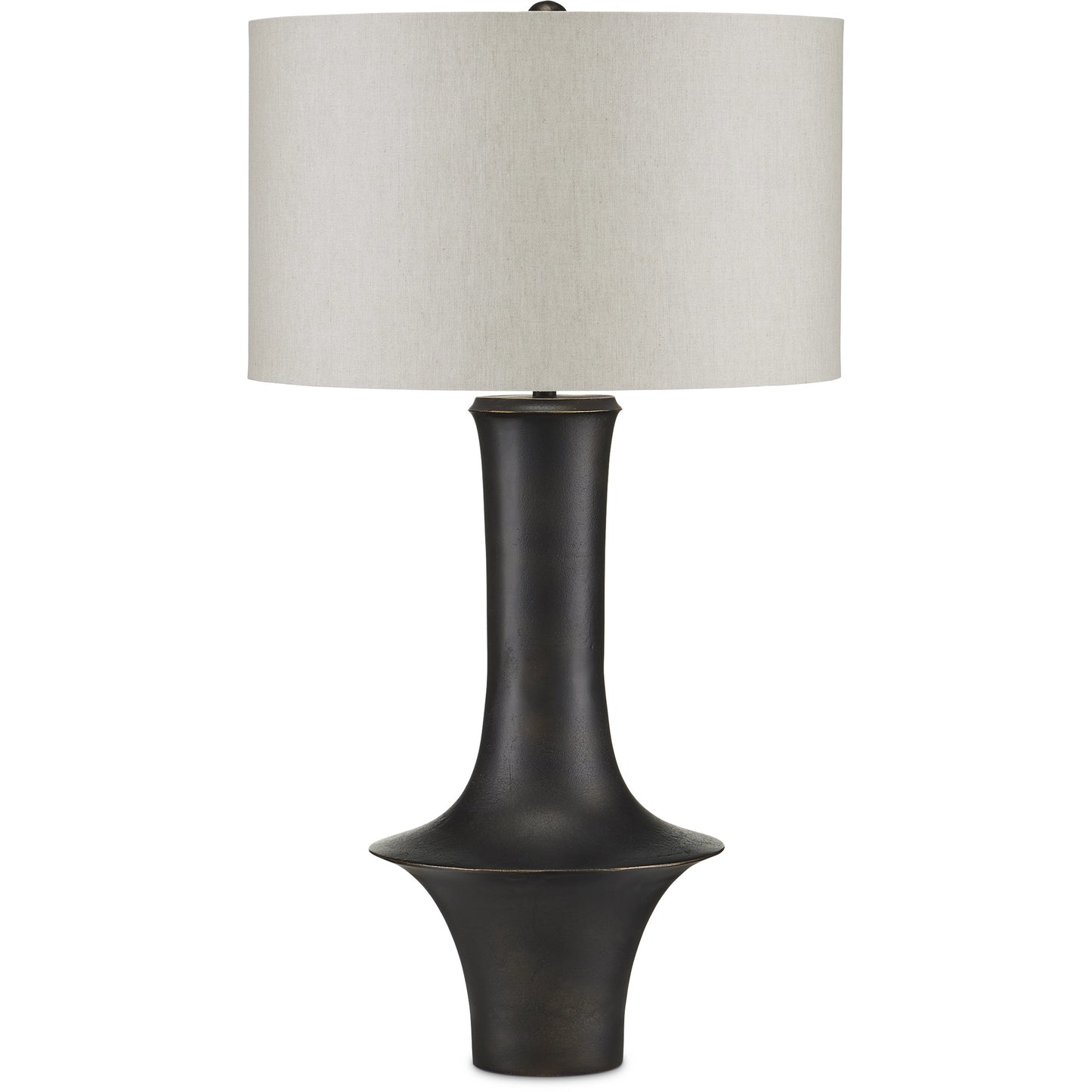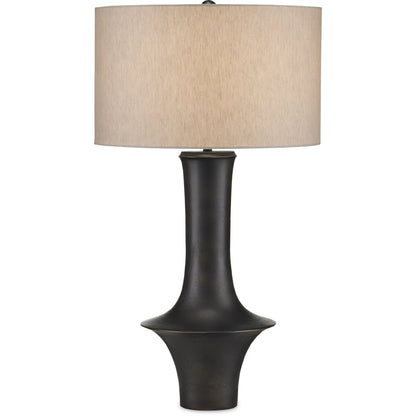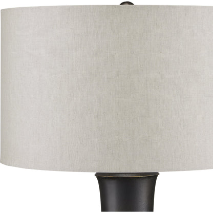 Pam Bailey and Christina Pomroy designed the Silvestri Black Table Lamp with its flaring shape that straddles the mid-century modern and industrial design eras. Made of cast aluminum in a matte black finish, the surface has a subtle pitting that was achieved through a sandcast method. The natural linen shade brings the black table lamp even more texture and heightens the warmth of the overall composition.