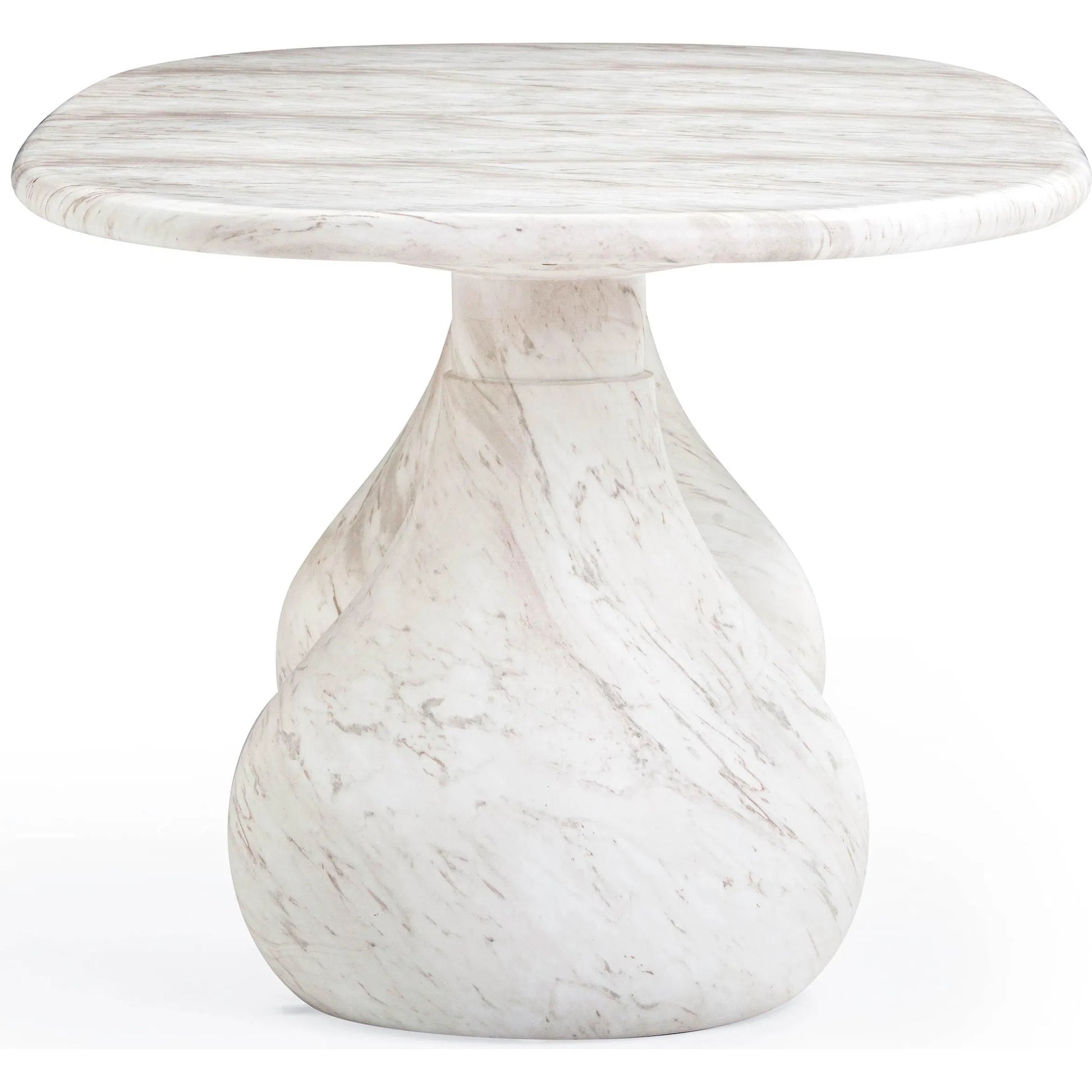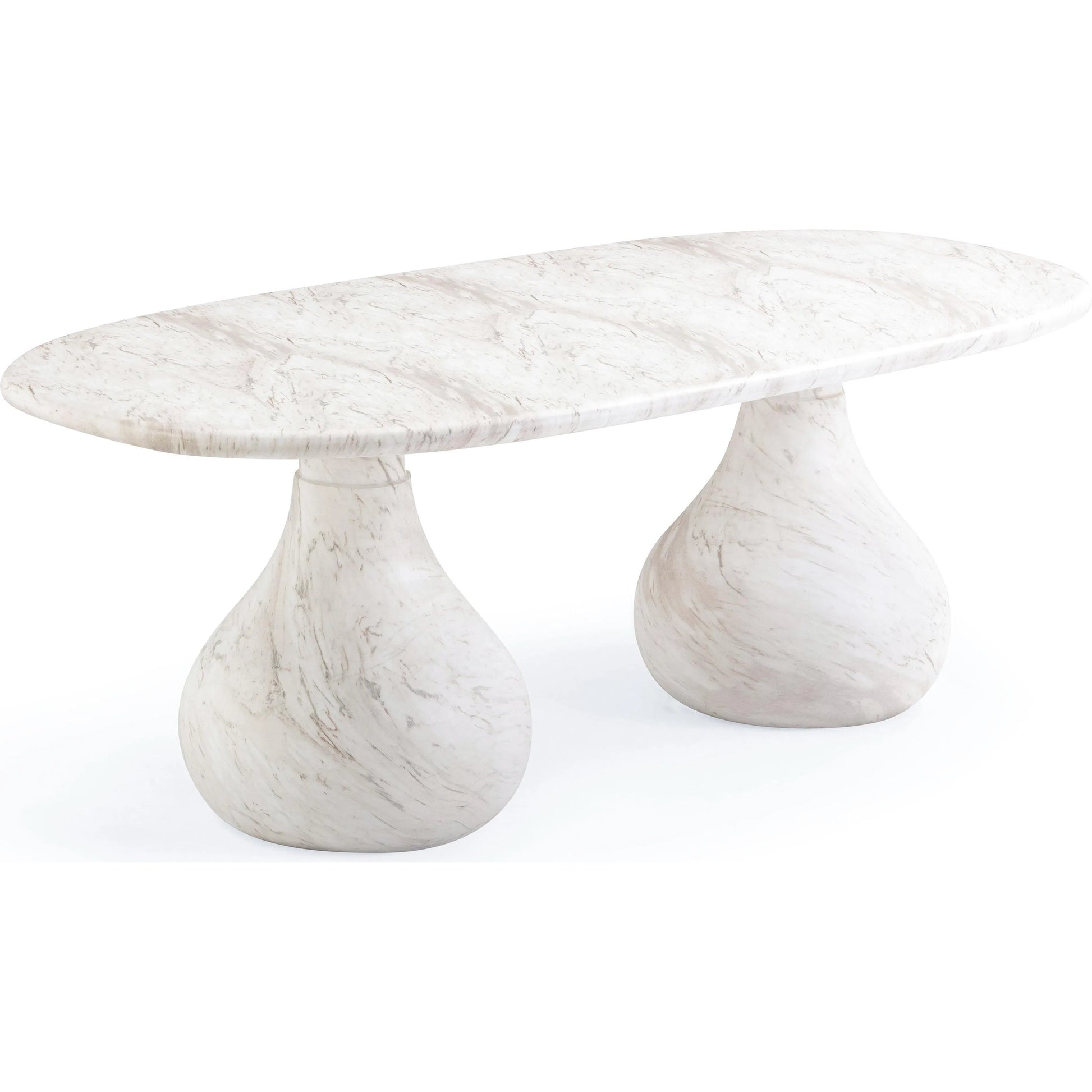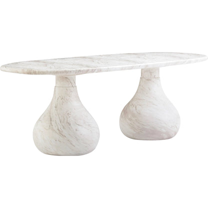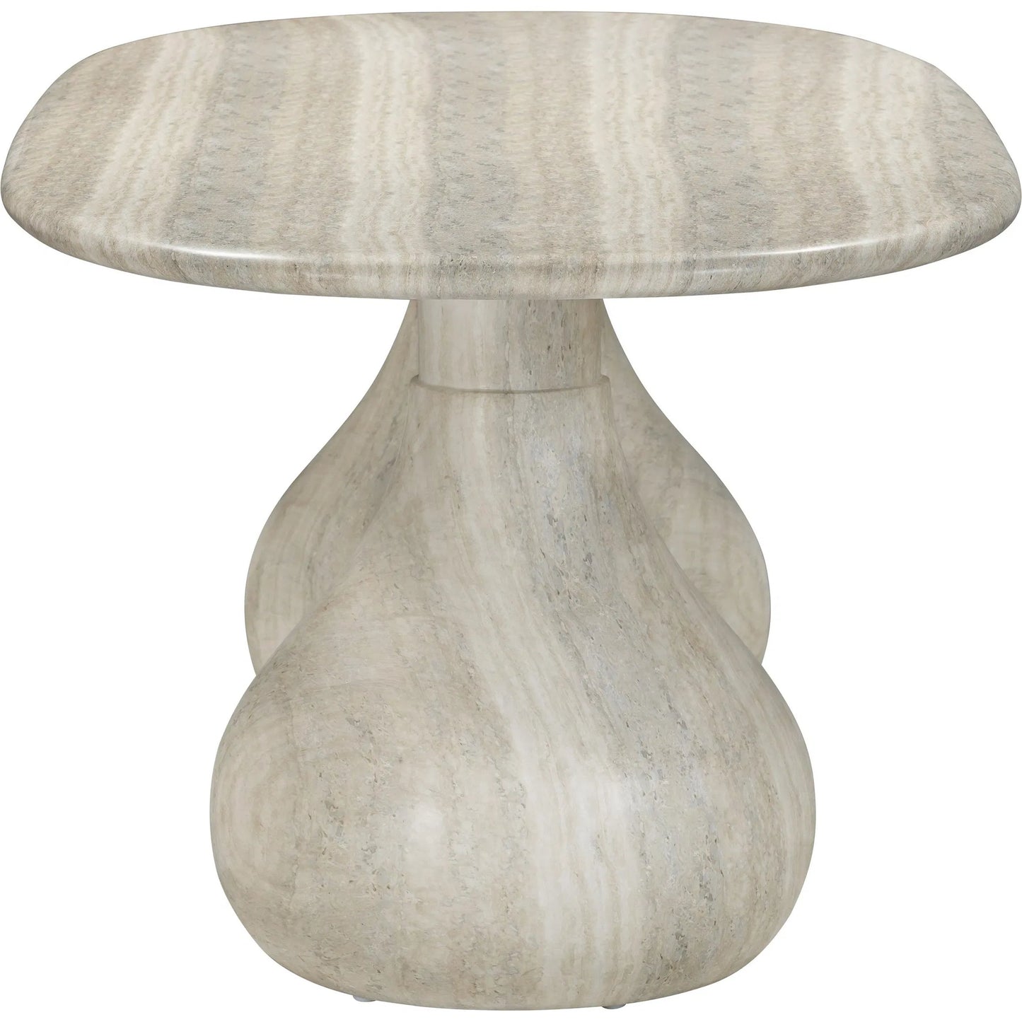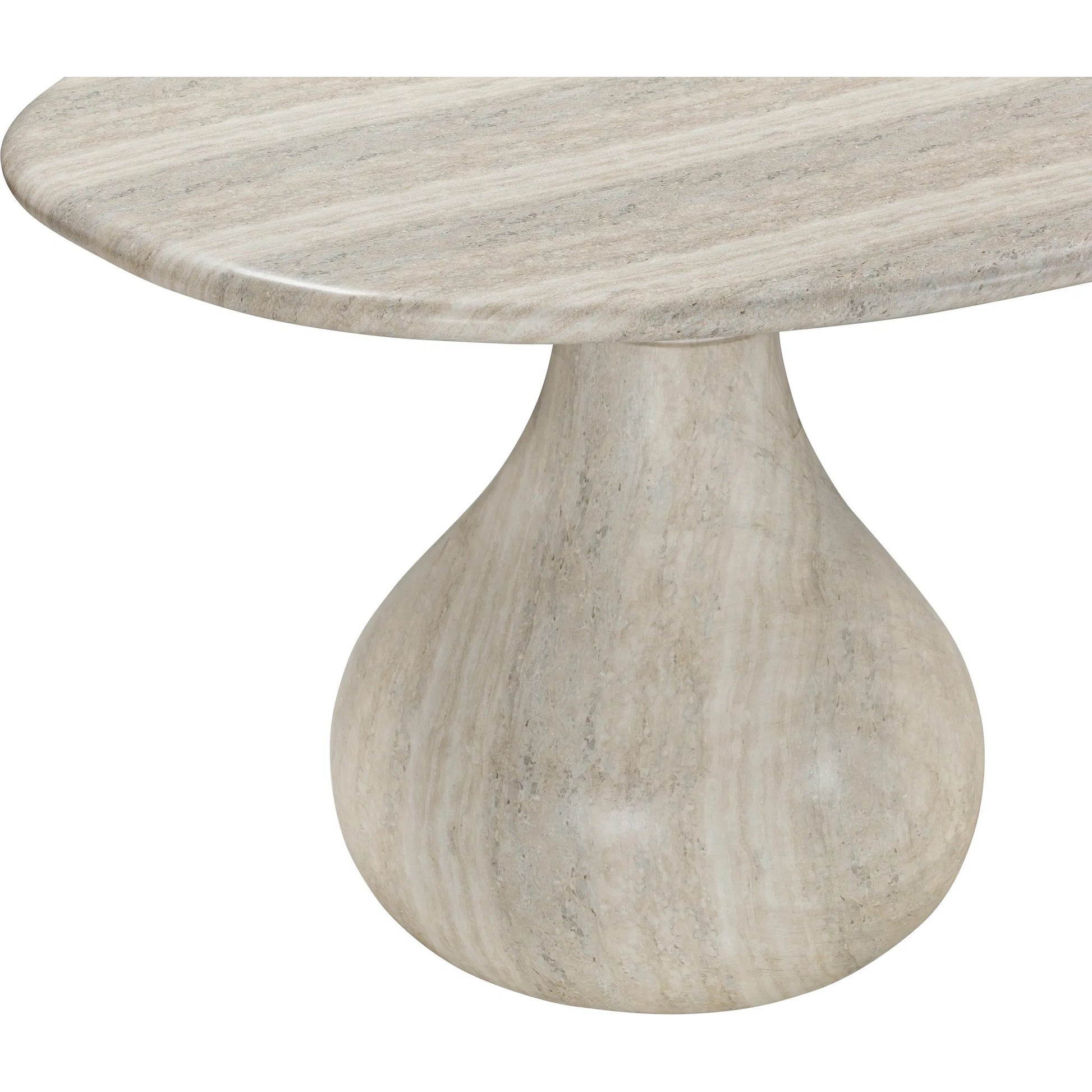 Introducing the flirtiest piece of furniture you'll ever meet - the Smooch Faux Travertine Indoor/Outdoor Pedestal Dining Table. Crafted with faux travertine for easy cleaning and a surface so smooth it's practically winking at you, this cheeky charmer works its magic both indoors and out. With Hershey's Kiss-shaped pedestal bases, it's not just a table; it's a meet-cute of style and ingenuity.