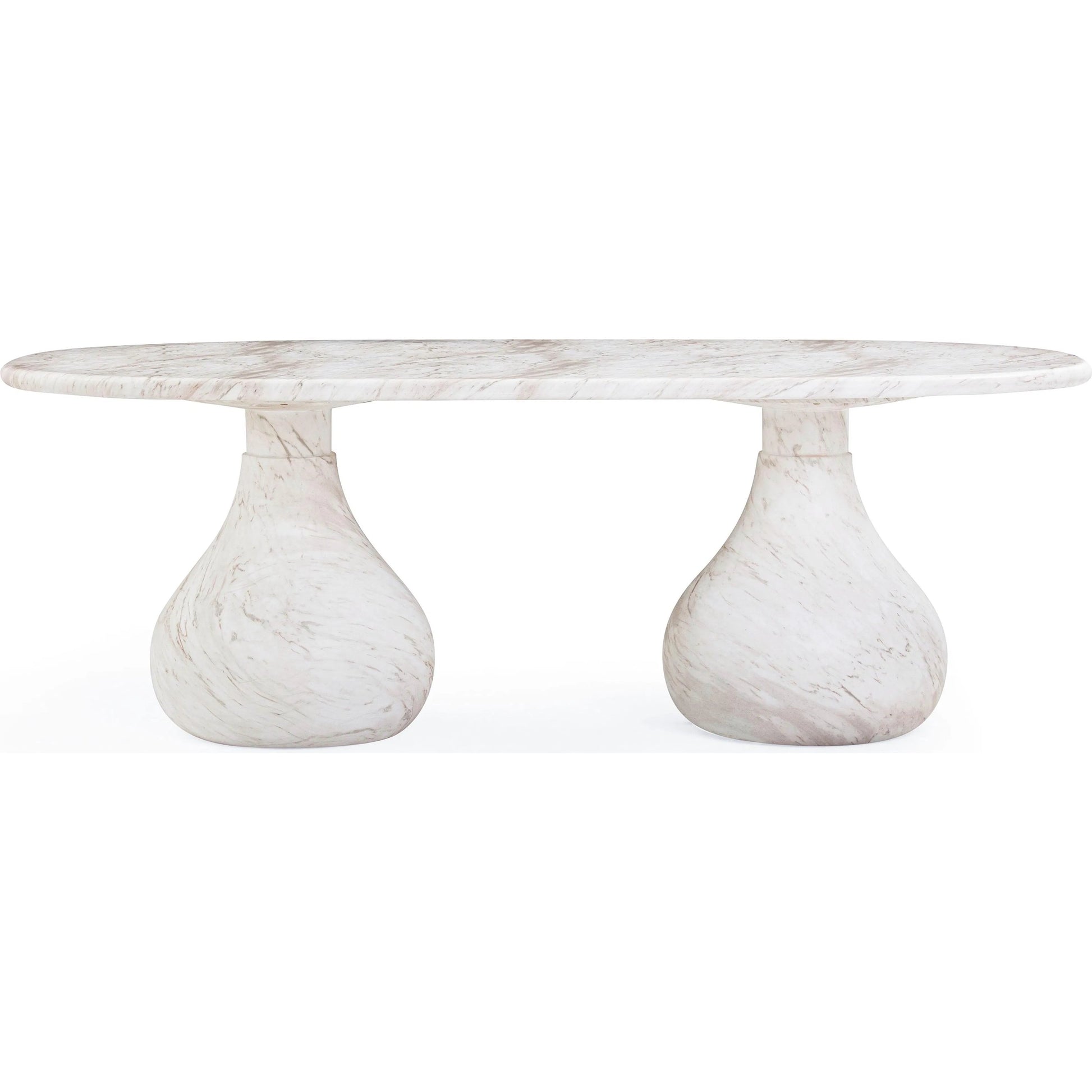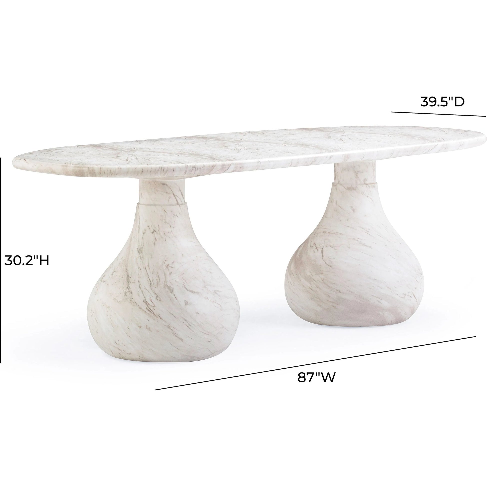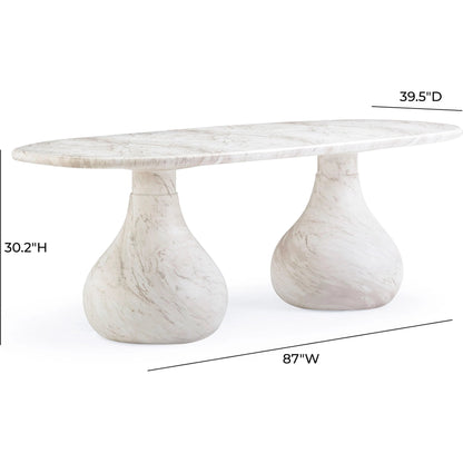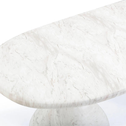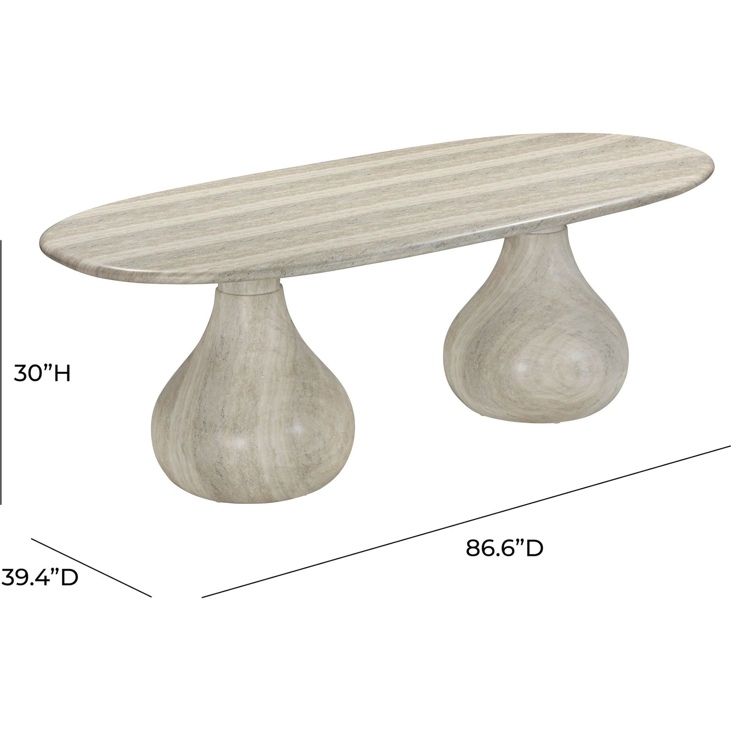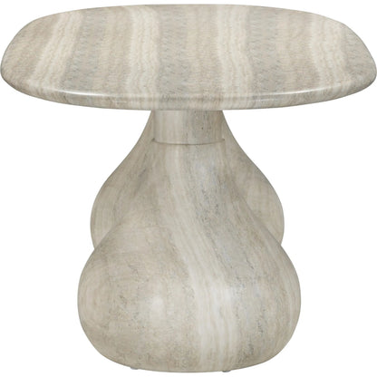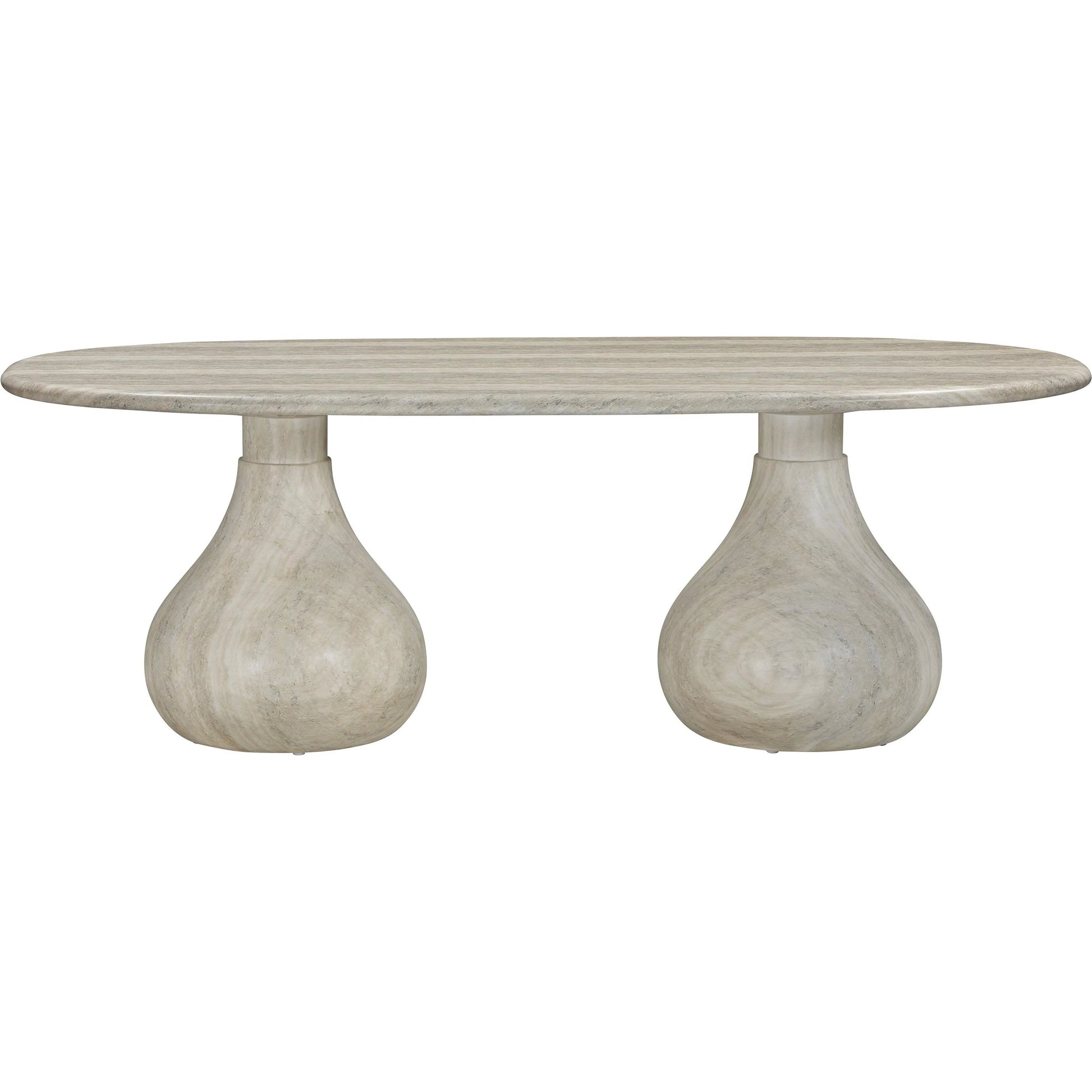 Introducing the flirtiest piece of furniture you'll ever meet - the Smooch Faux Travertine Indoor/Outdoor Pedestal Dining Table. Crafted with faux travertine for easy cleaning and a surface so smooth it's practically winking at you, this cheeky charmer works its magic both indoors and out. With Hershey's Kiss-shaped pedestal bases, it's not just a table; it's a meet-cute of style and ingenuity.