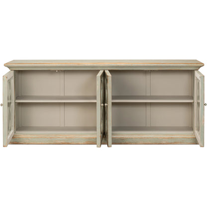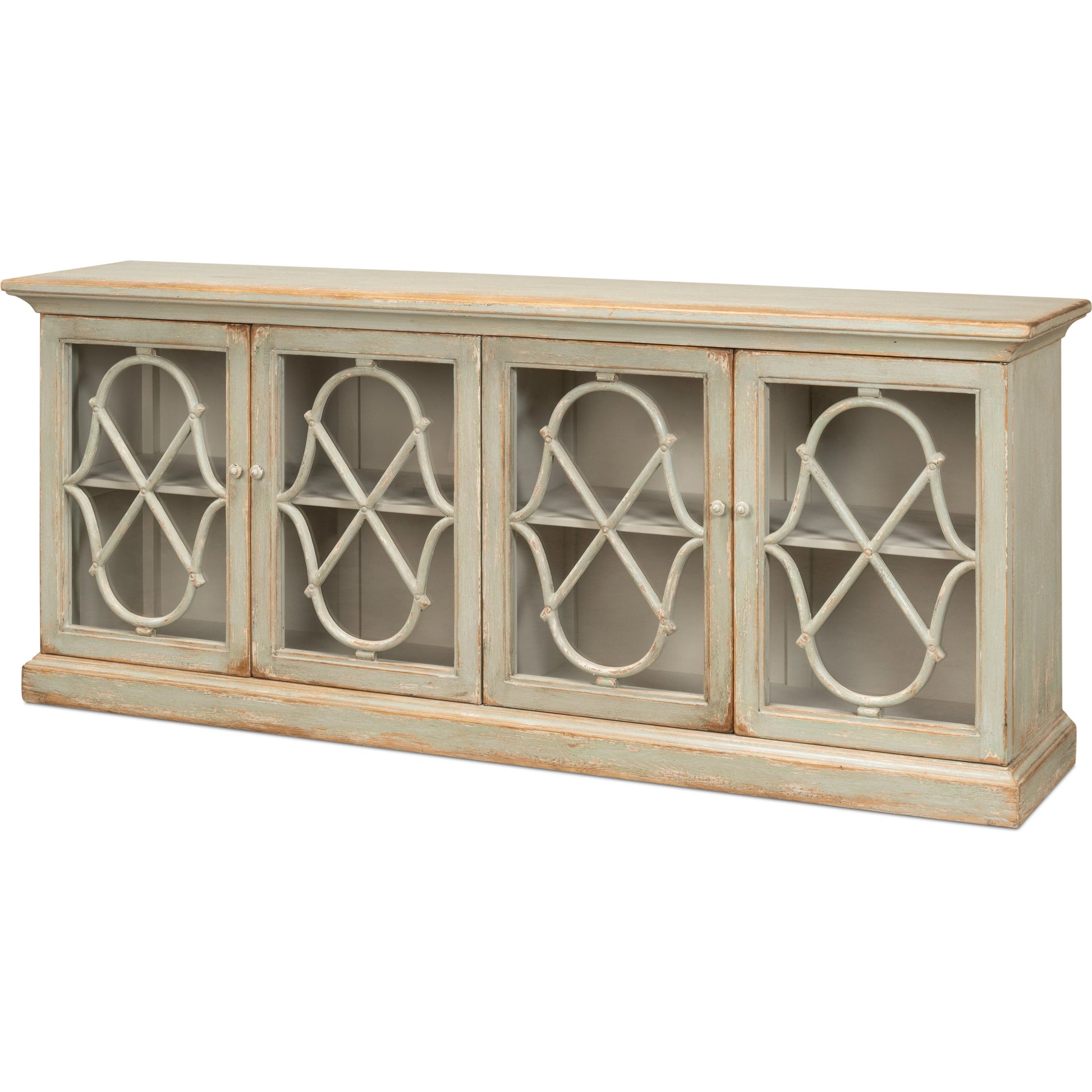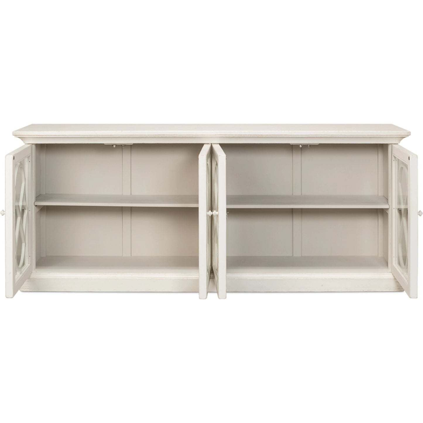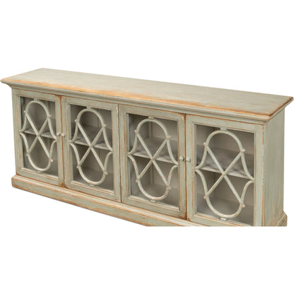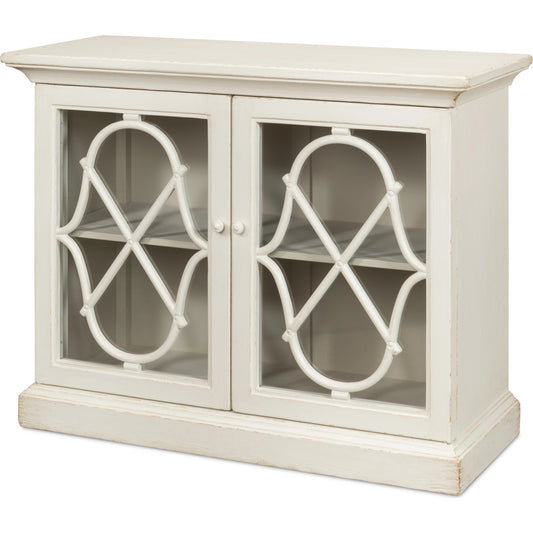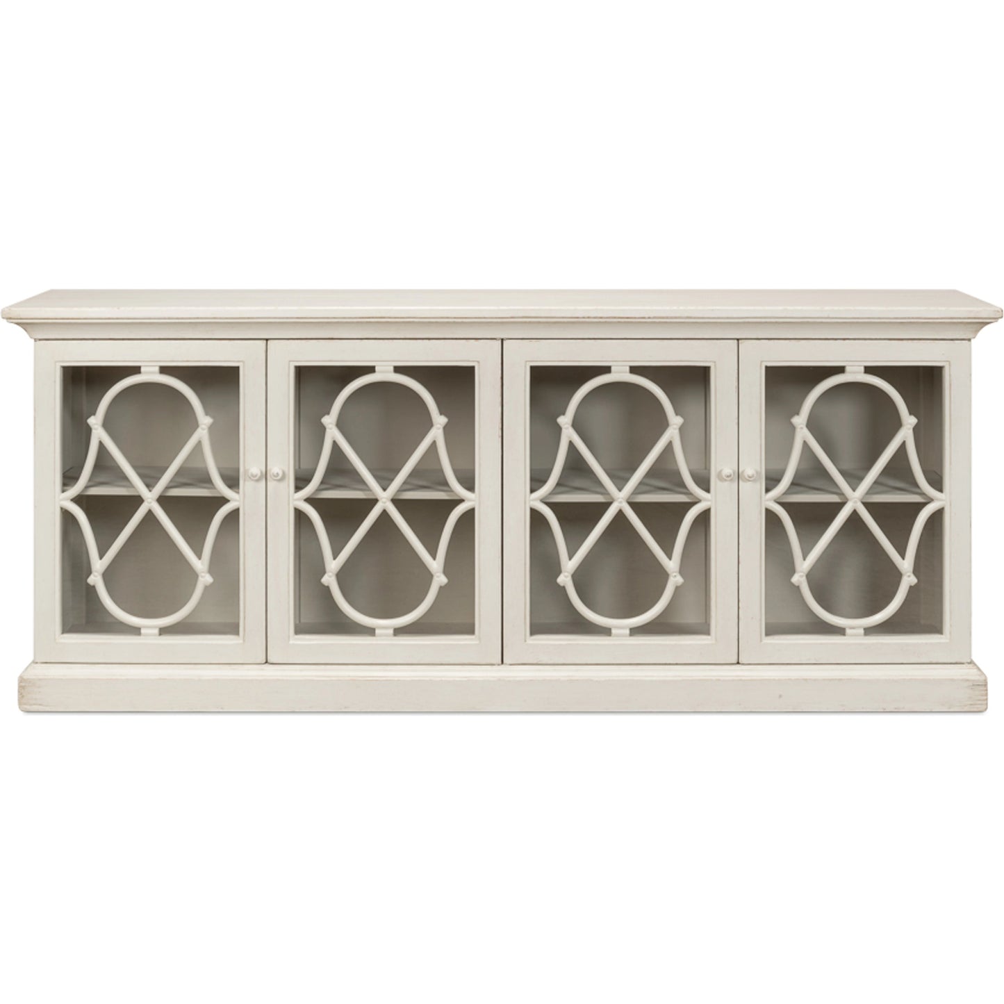 While it calls to mind 19th century French antiques, this reclaimed pine sideboard is unmistakably Serried with its emphasis on high drama and a high function, set apart with a graceful, feminine fretwork motif. A multi-layer antique white finish and iron hardware gives it the weight of an heirloom in an airy design right for today.