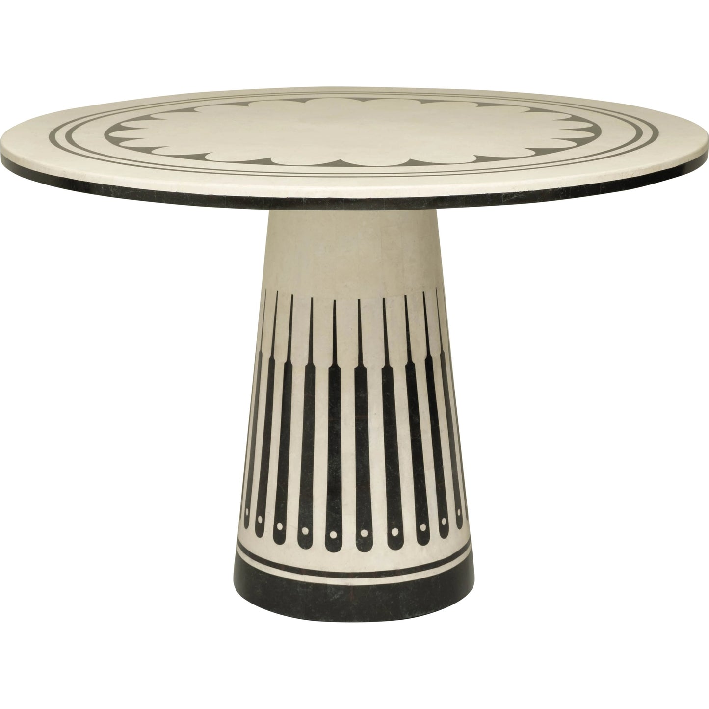 Honed White Agate and Black Waxstone Inlaid Center Table.