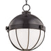 The hanging globe—half opaque white glass diffuser, half metallic shell—is a perennial favorite. In our Sumner family, thumbscrews with lathe-cut knurling add to its industrial evocations.