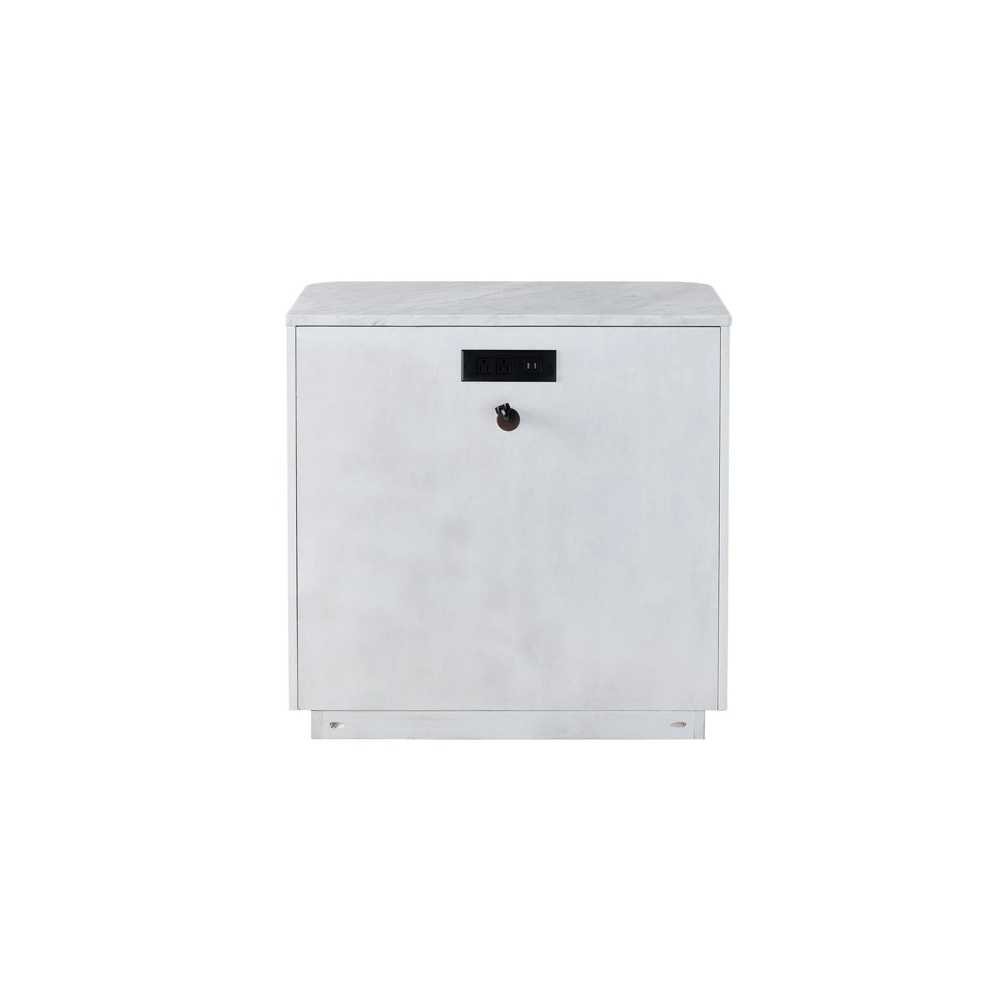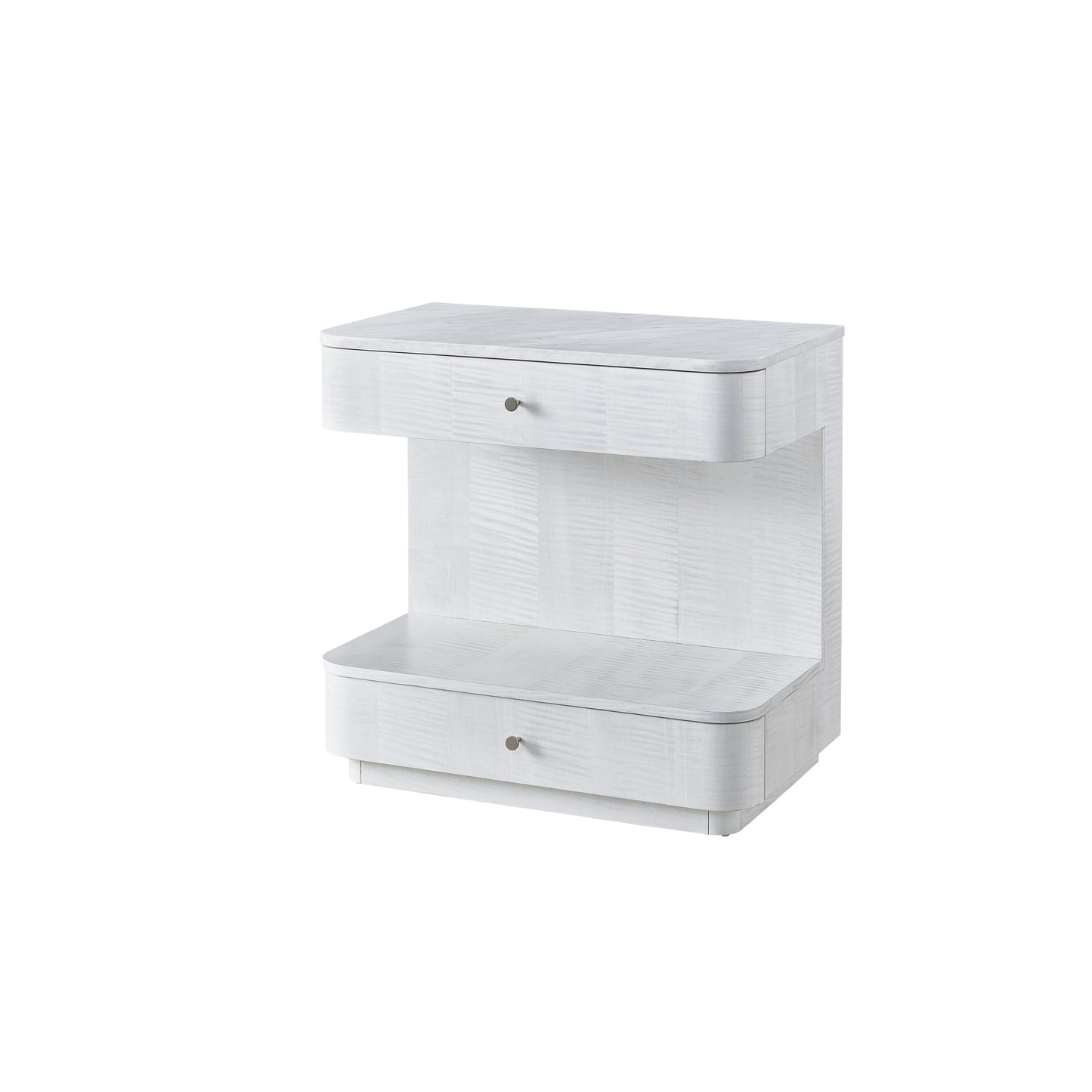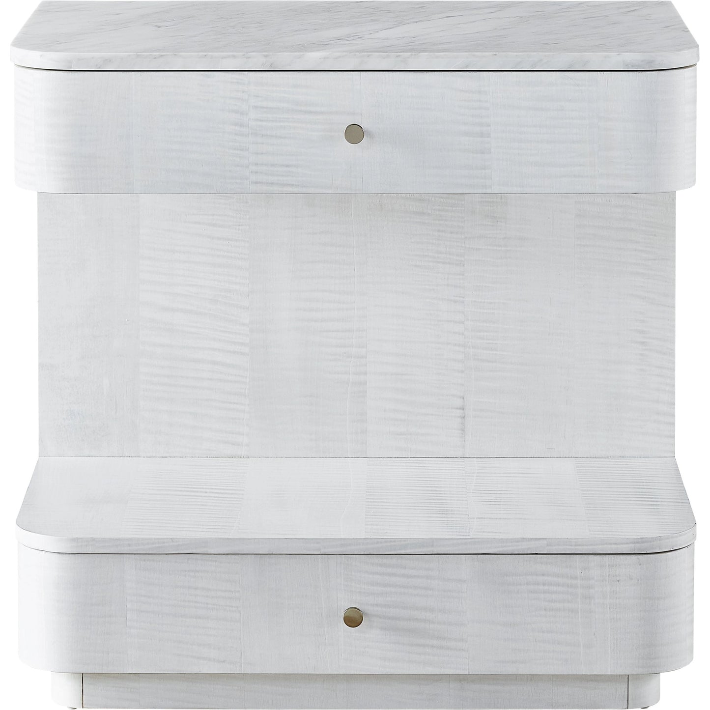 Elevate bedsides with the imaginative Paris Nightstand, a stylish twist on a retro look featuring two drawers, white marble tops and a lavish white sycamore finish.