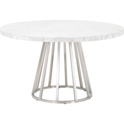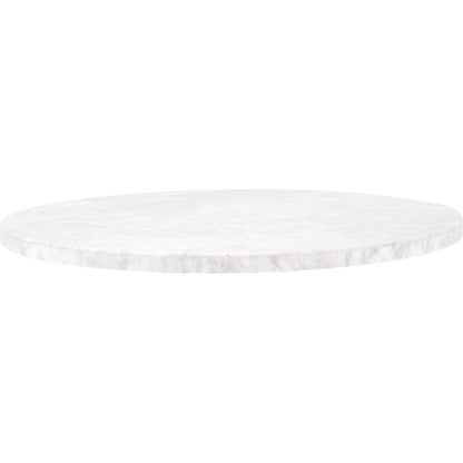 Ideal for both transitional and modern spaces, this round Carrera marble tabletop will work well in many settings. The thick tabletop is constructed with a beautiful white marble with gray veining. Its elegant and classy look is a sure fit for any transitional dining space. The neutral color is a perfect fit with several color palettes and will pair nicely with its metal counterpart base. The table comfortably seats 4 people and is a great fit for smaller spaces. The base is sold separately.