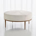A cocktail table-sized hair-on-hide ottoman is functional as well as beautiful. Use it for seating, as a coffee table with a large tray, or just to put your feet up! Covered in a luxe hair-on-hide with top-stitching, the round cushion sits on an antique brass-finished iron base with four tapered legs.