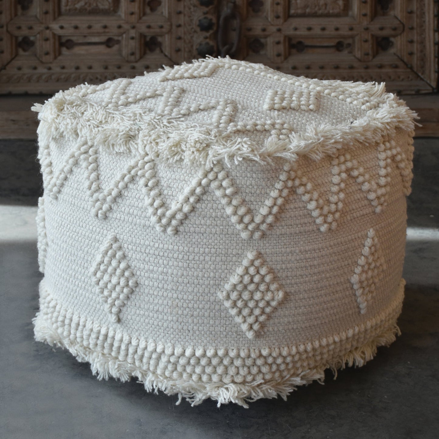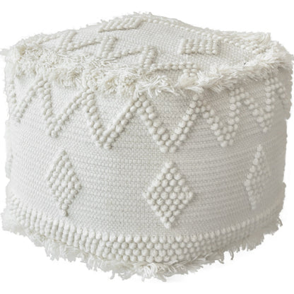 Hand Woven From A Blend Of Wool And Cotton In Soft Ivory, Accented With Raised Bohemian Inspired Patterns And Fringed Edges.