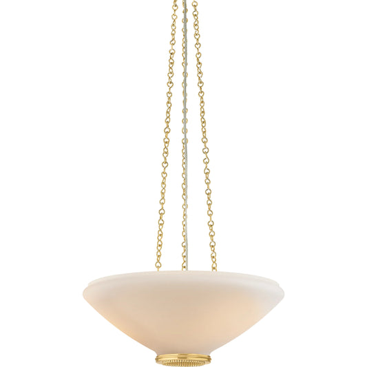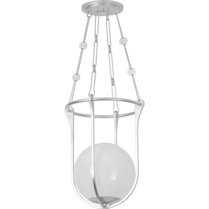 A delicate Vintage Gold Leaf cage, gracefully swirling cloud glass orb and intricate suspension chains converge to create this mesmerizing pendant light. Exhibiting a jewelry-like appearance, Verbank is enhanced by its subtle details, including circular ornaments on the chains and Art Deco-inspired curves. Like a planetary body glowing in the sky, this is a truly magical lighting experience.