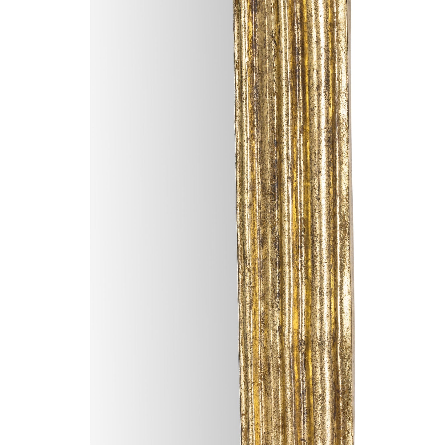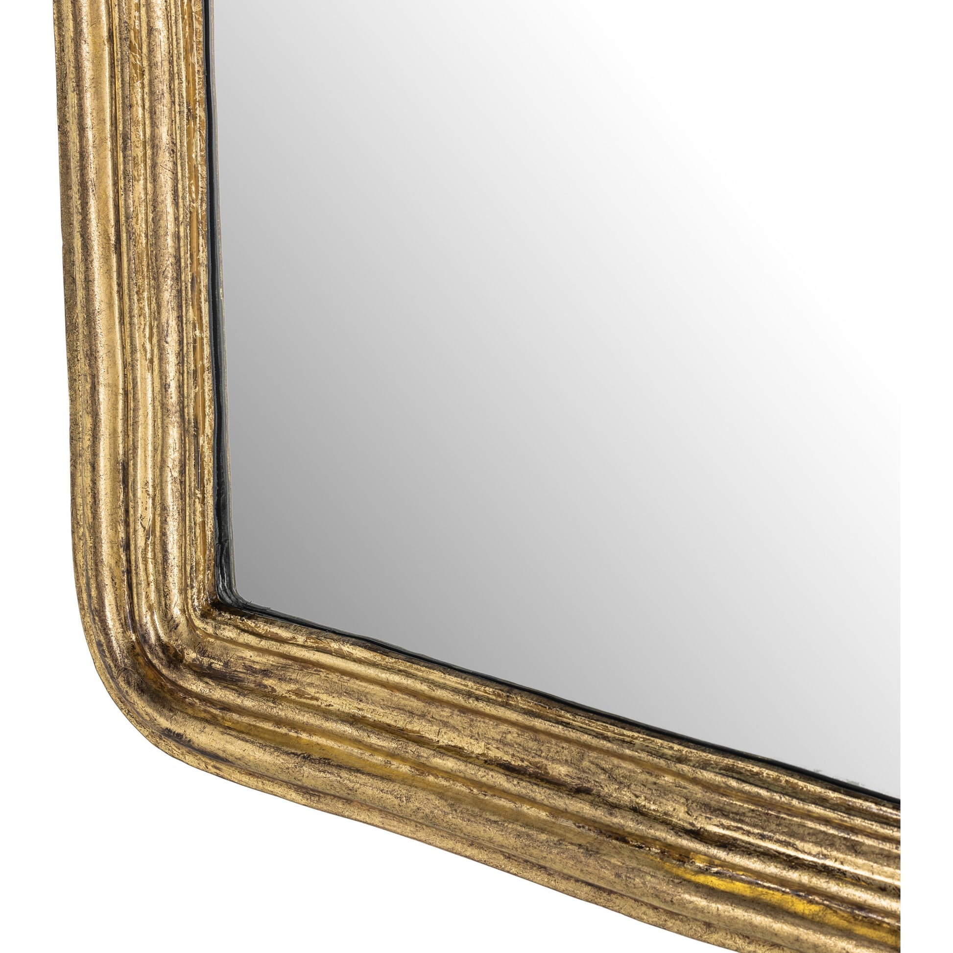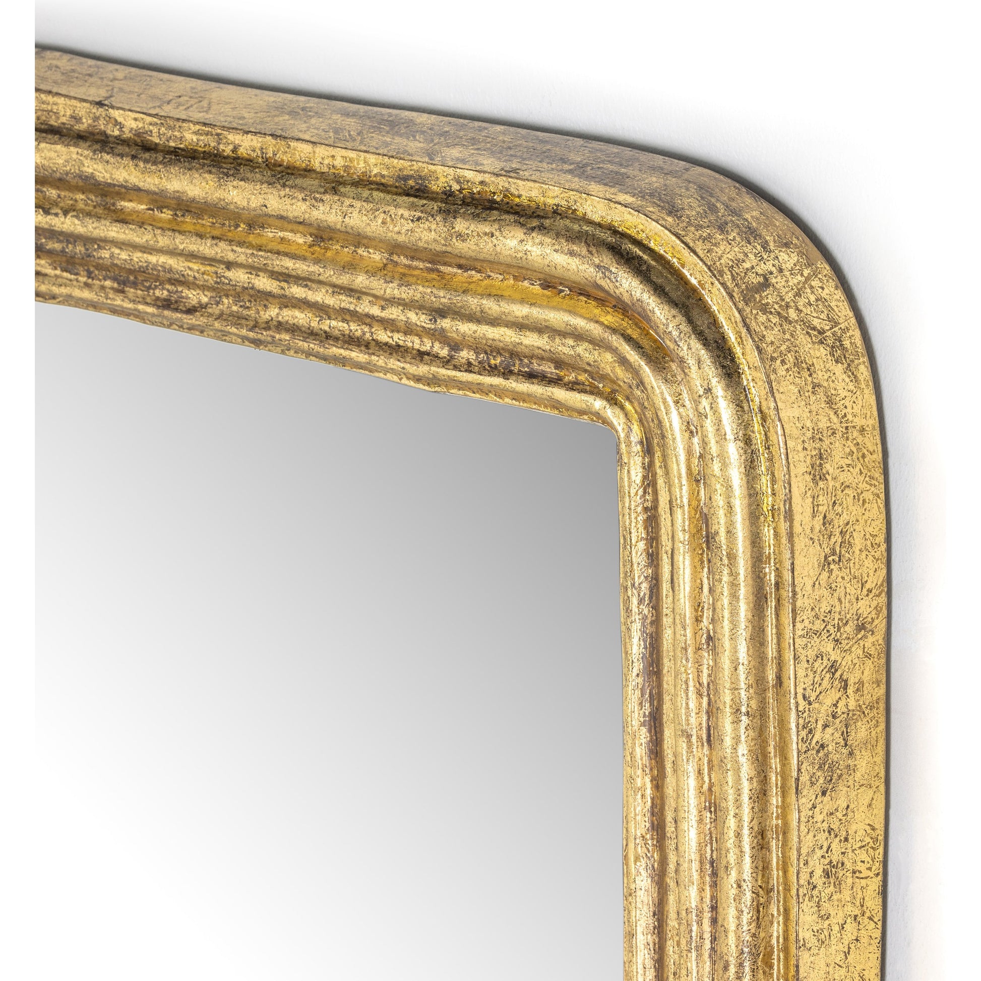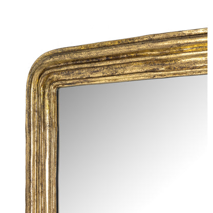 An art deco-inspired statement piece. An aged-gold leaf finish brings a vintage, found look to this large-scale mirror.