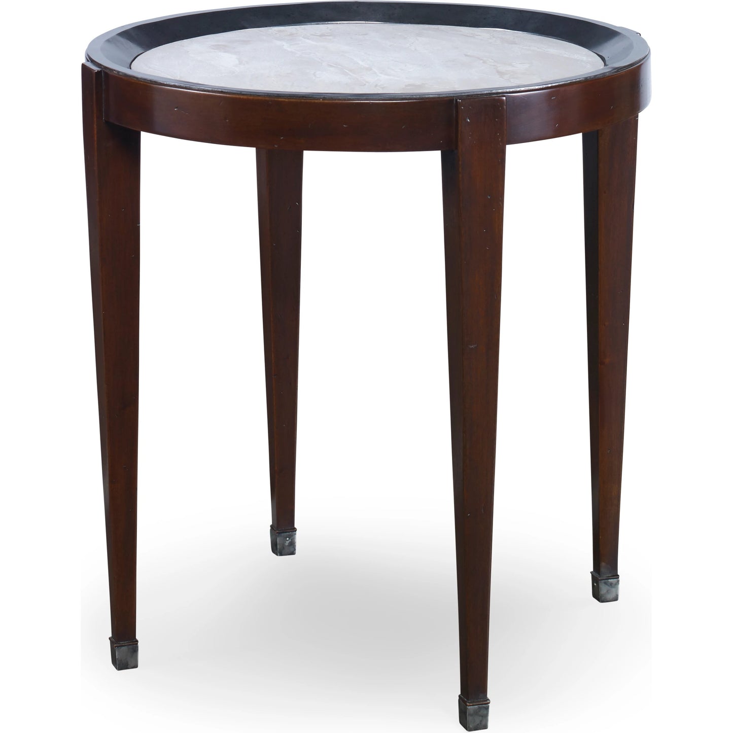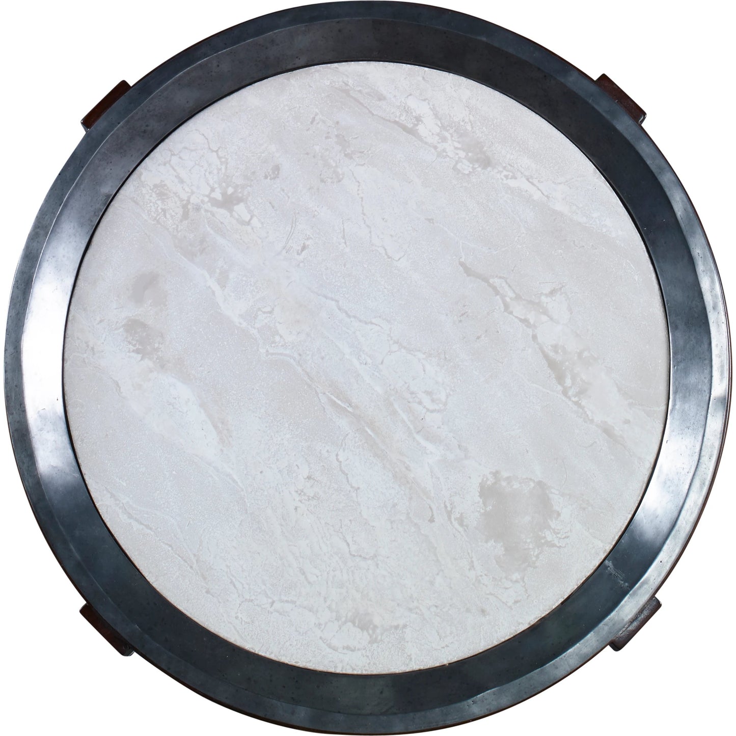 Dark Walnut Finished Winthrop Occasional Table with Dessert Tan Scagliola Top, Metal Accent
