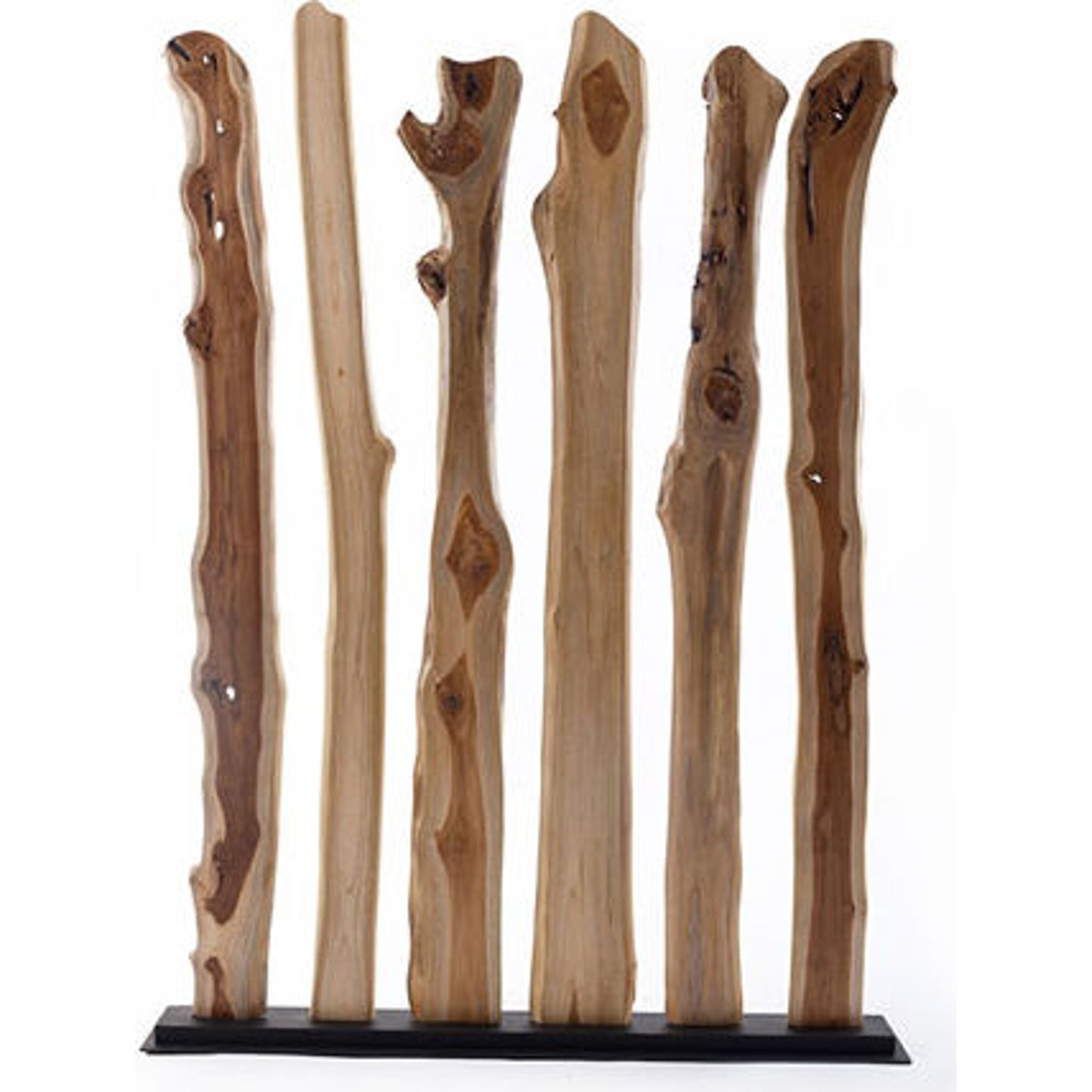 Chamcha wood is a fast-growing tree that is prized for its richly figured grain and distinct sap line. It is characteristic for these trees to grow crooked and with low and heavy branching. This allows for some of the most interesting and organic forms, which we cherish at Phillips Collection. The Wood Screen is made of real wood and works well as a sculptural accent or space divider.